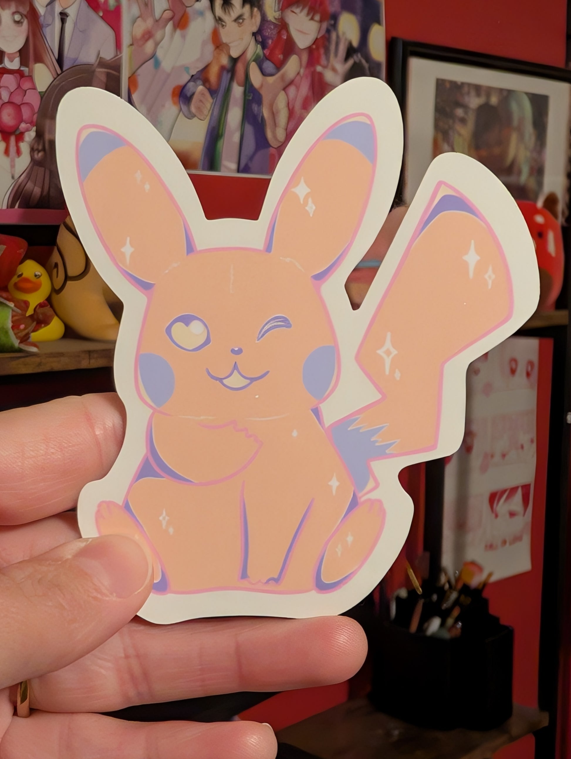 Add a touch of magic to your space with our Dreamy Pikachu Sticker! This adorable design features Pikachu in a dreamy, soft pastel world, surrounded by adorable sparkles. Perfect for adding a little electric charm to your laptop, water bottle, notebook, or anywhere you want to bring a dose of whimsy.