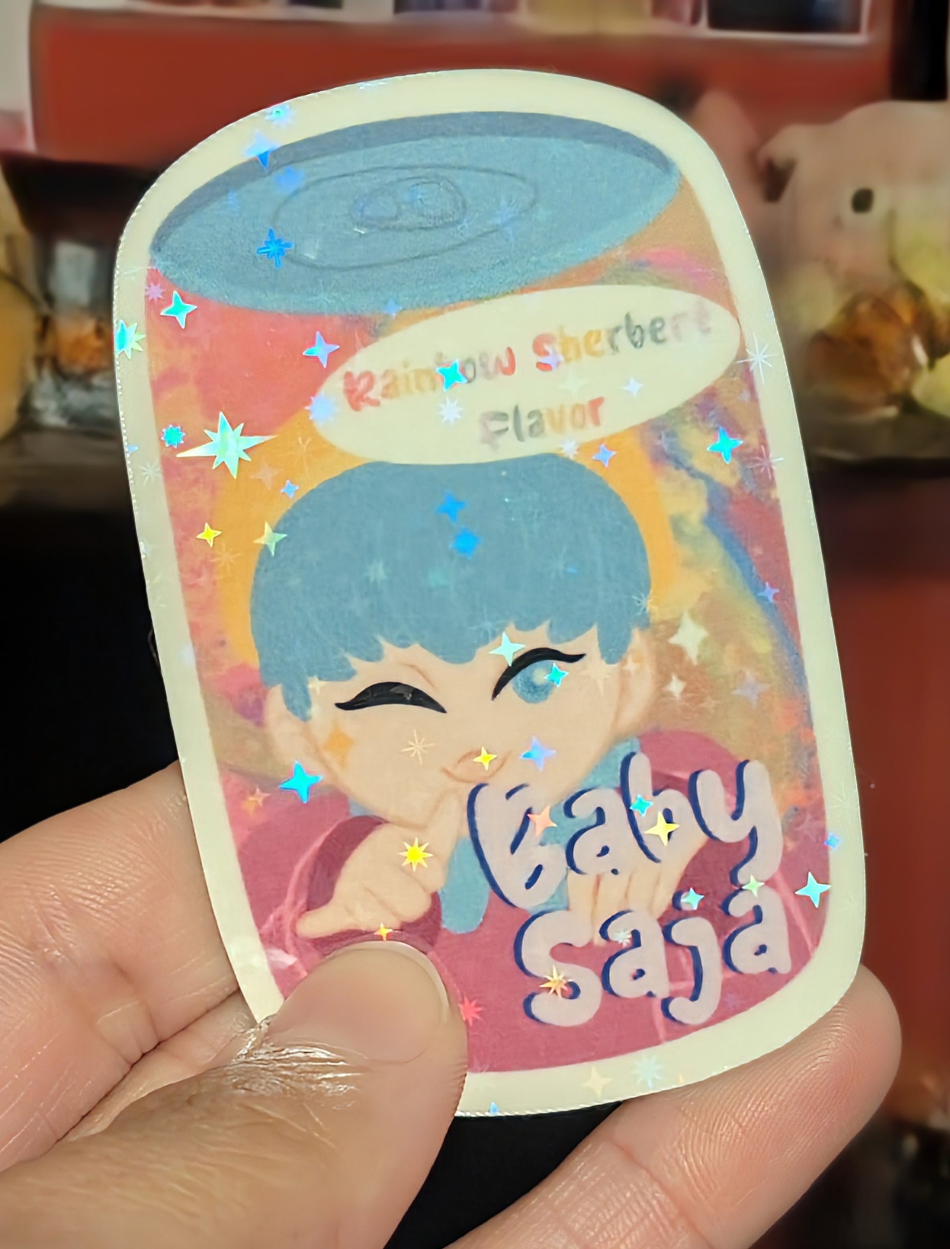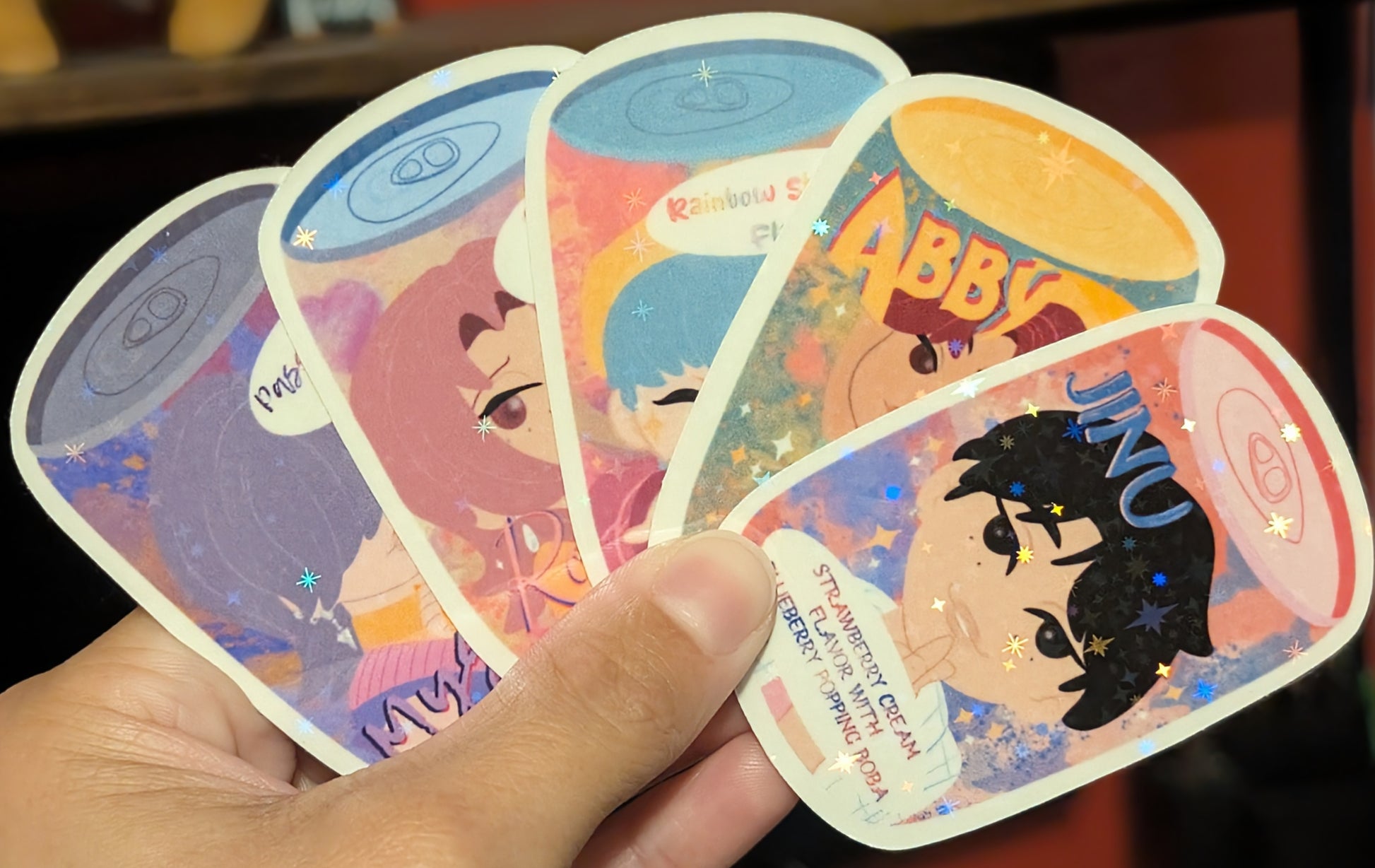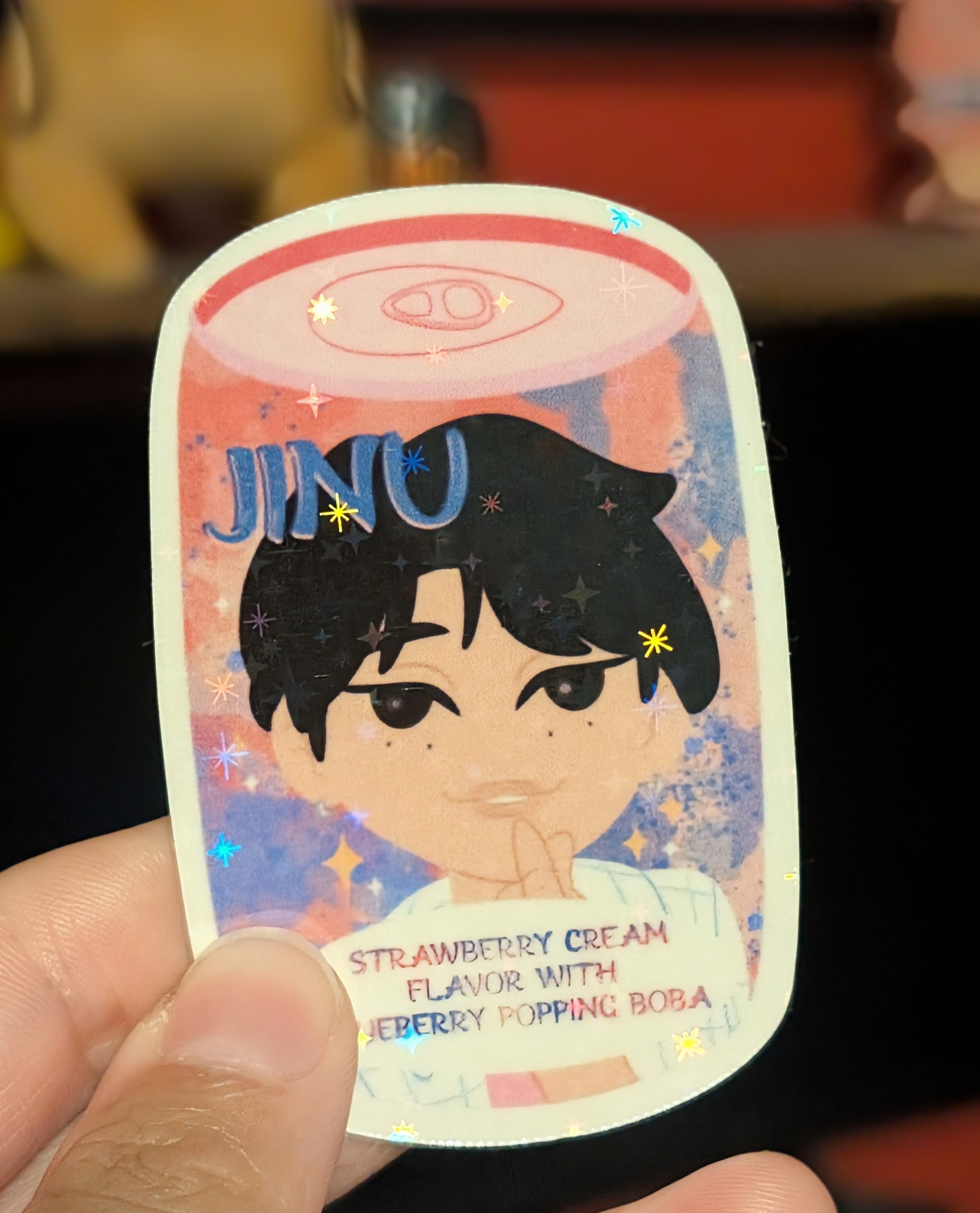 The full set of totally delicious Saja Boys Soda Pop Stickers! Enjoy cracking open a 5 pack of extra sparkly stickers, just ready to adorn your favorite sketchbook or whatever your heart desires. After all, the Saja Boys love you and want to see you happy.